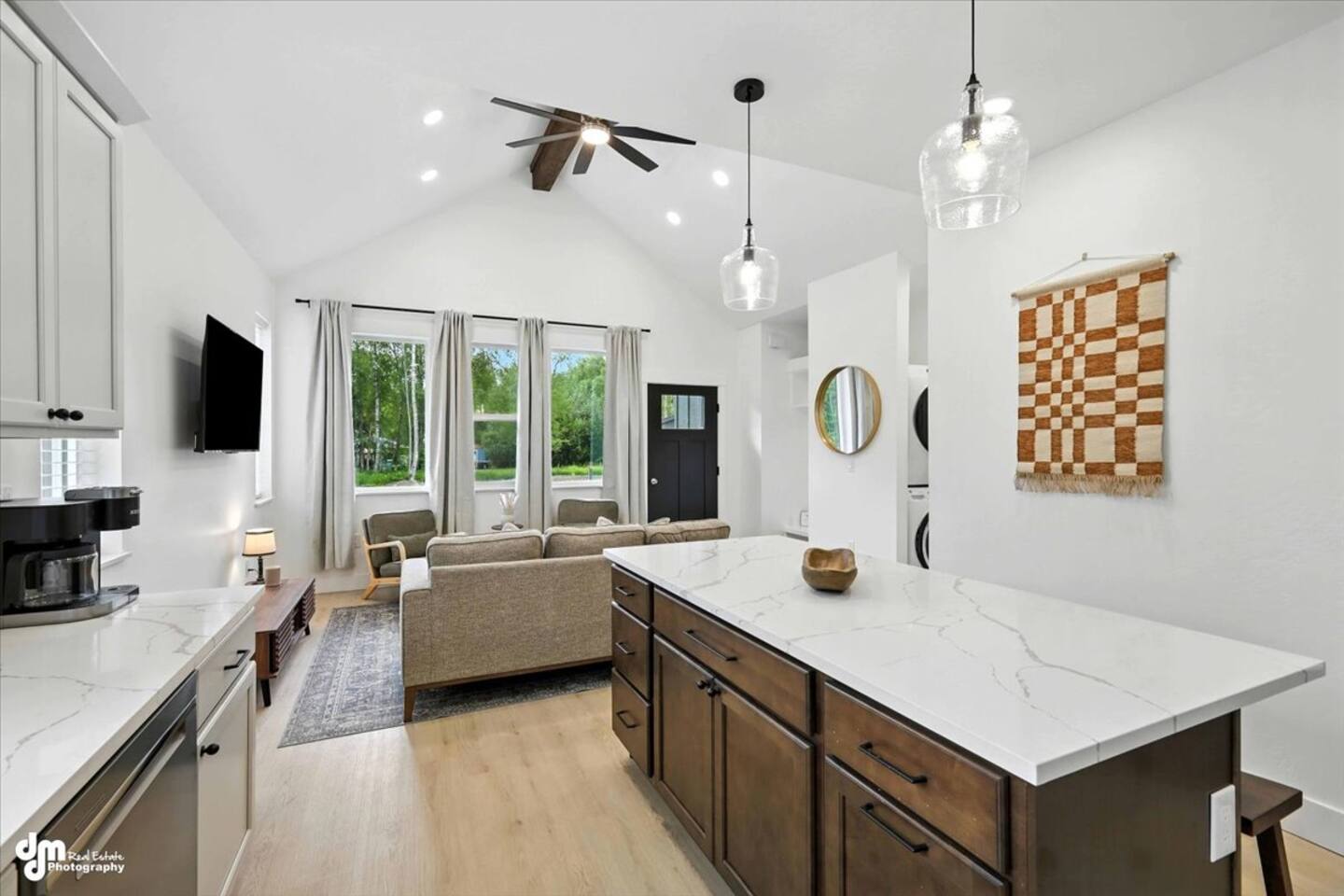 Private location that’s still very convenient and close to good food, hikes, and things to do in Palmer. Just 20 minutes to Hatchers Pass, which was basically like a mini Switzerland. Seems like a new build, everything in pristine condition and working smoothly. Their kitchen is fully stocked more than your average kitchen with everything you need to get started. Added bonuses included bottled water and snacks, as well as generous coffee bar with new Keurig. Because of the secluded location, we had great views of stars and a glimpse of the early season northern lights. Fast and easy checking in/out. Responsive hosts from the beginning. 100% recommend